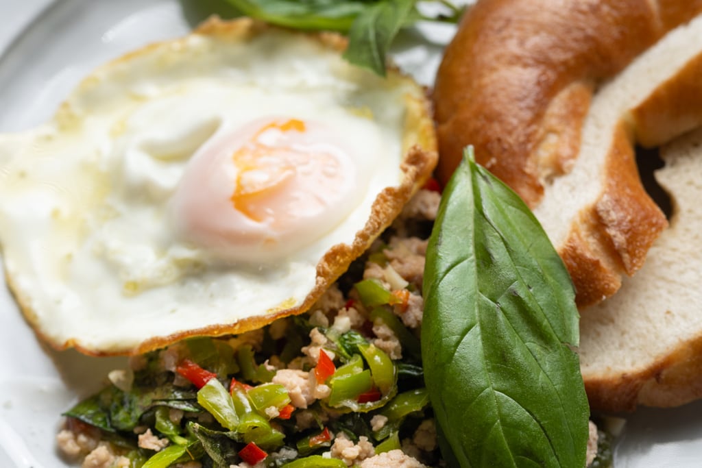 バジルの香りとナンプラーの香りが混ざり合ったとっても美味しいお惣菜ベーグルです☺︎
